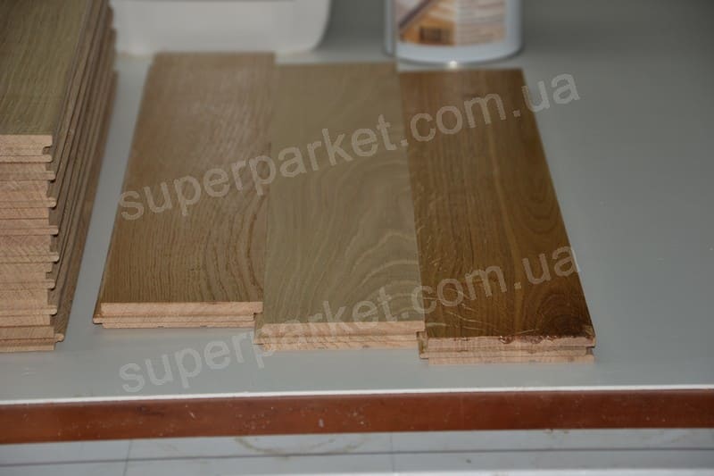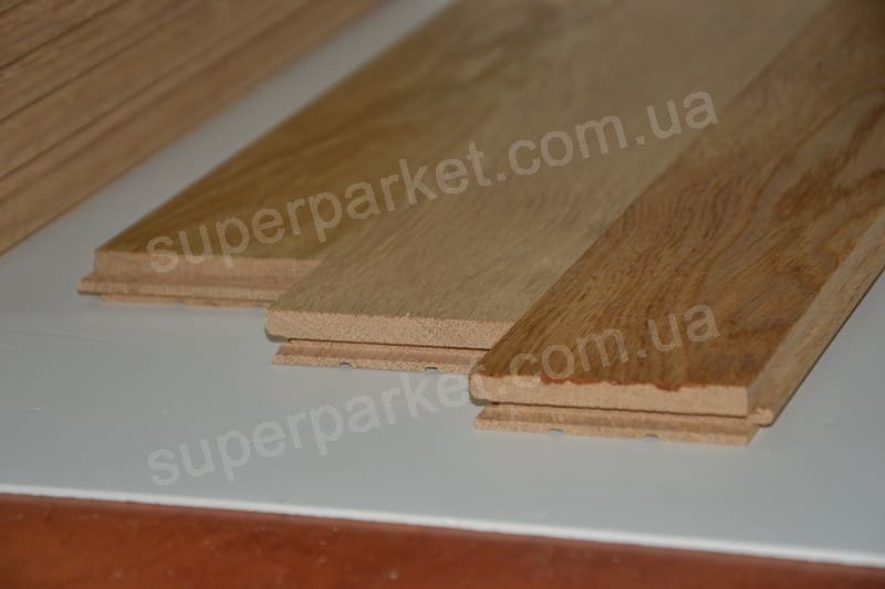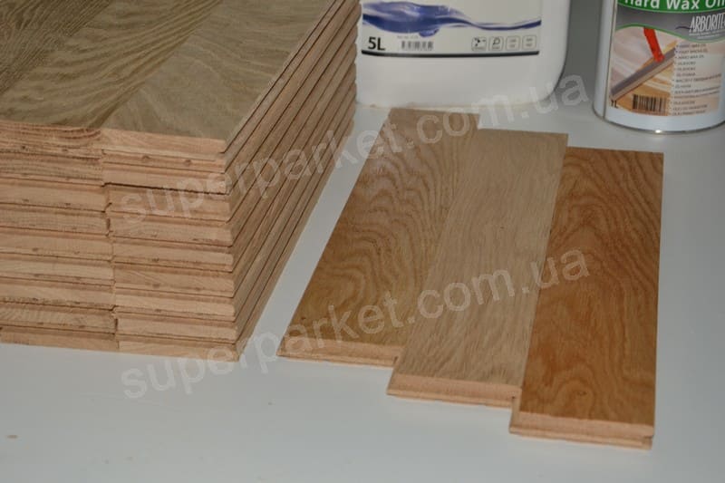 Натур - в паркетних планках допускається різниця по кольору деревини. Радіальний та тангентальний розпил. Серцевинні лучи, здорова світла заболонь по всій довжині не більше 1/3 планки. Сучки: здорові світлі - діаметром до 7мм, здорові і діаметром до 5мм; глазки - до 2шт на планці. Кількість сучків на лицьовій повехні не регламентовано.