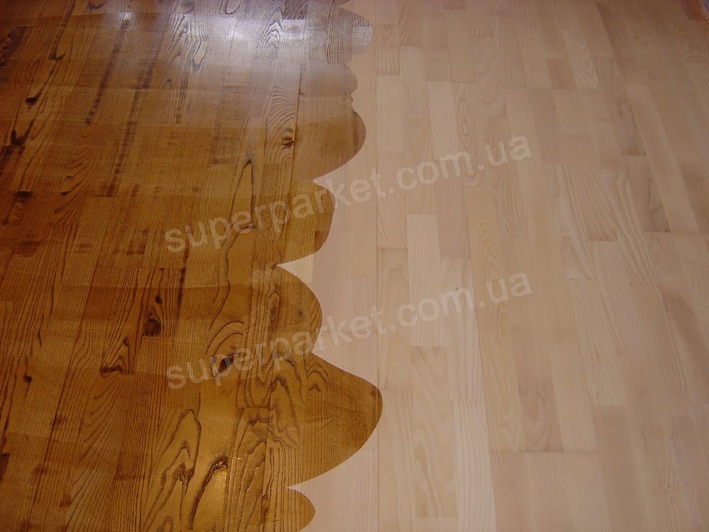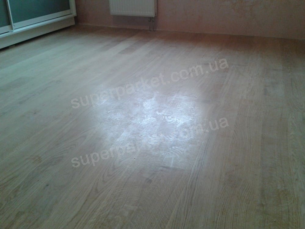 Спочатку було проведено циклювання паркету з ясеню, потім його вибілювання.