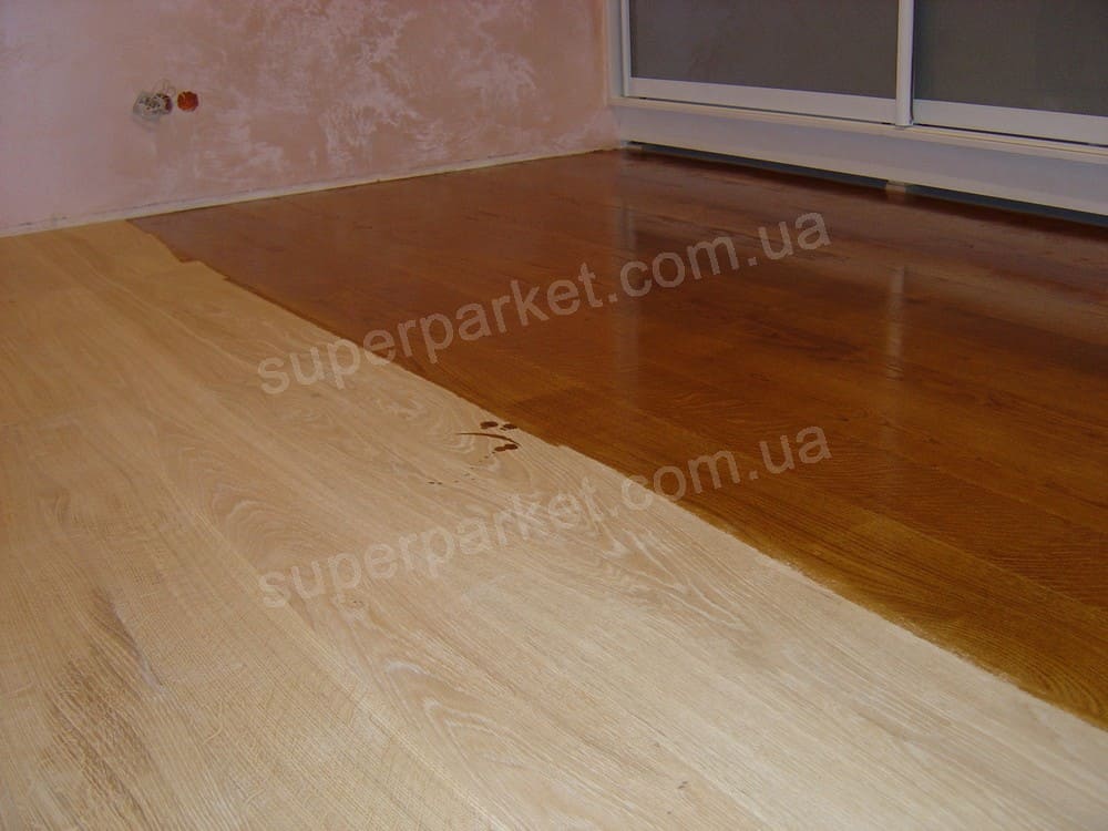 Майстри з Суперпаркету змогли вибілити наш дубовий паркет, прибрати жовтий колір, від