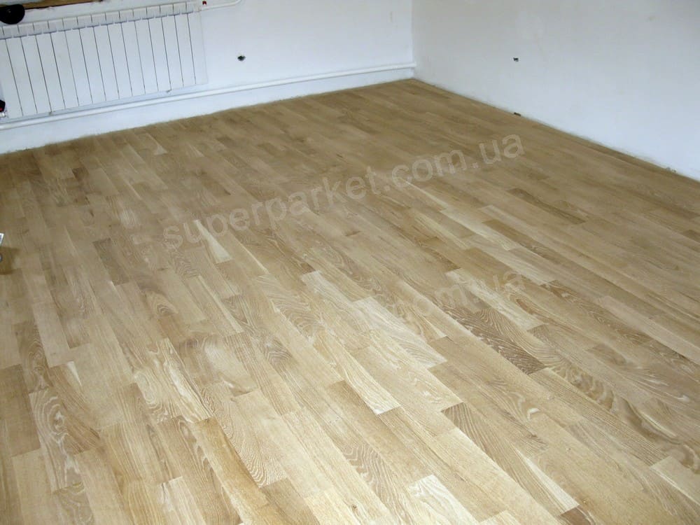 Це класичний спосіб, який дозволяє тонувати паркет навіть в білий колір. Термін експлуатації