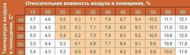 Щоб точно знати показники вологості різних порід дерева відносно стабільних умов, в яких вона перебуває, розроблена спеціальна таблиця. Зміни температури навколишнього середовища впливають на показники вологості дерева, наприклад, при +20 в кімнаті, і 50% вологості, показники рівноважної вологості дорівнюватимуть 9.2%.